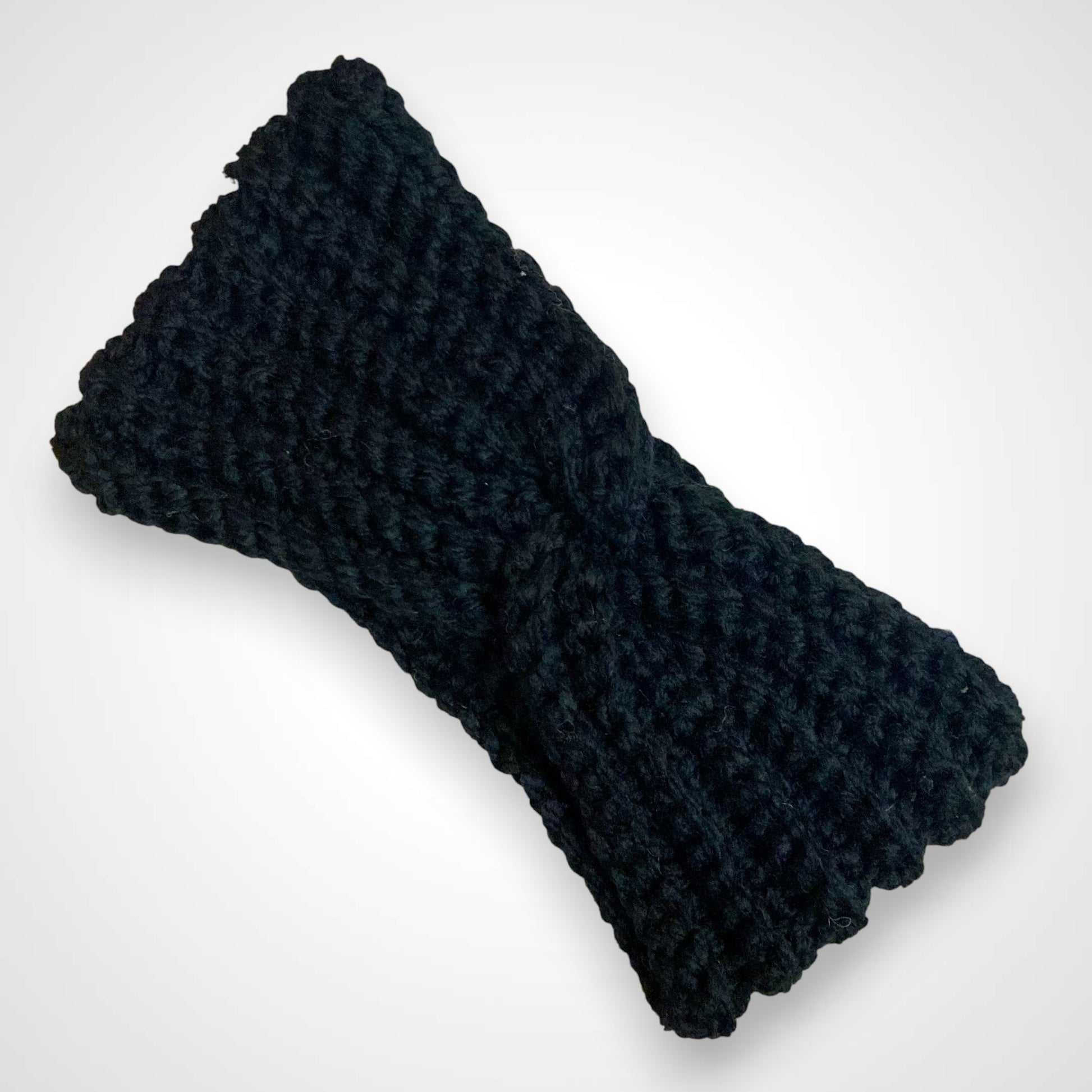 Fascia invernale con motivo intrecciato, prodotta all'uncinetto e con filati riciclati.