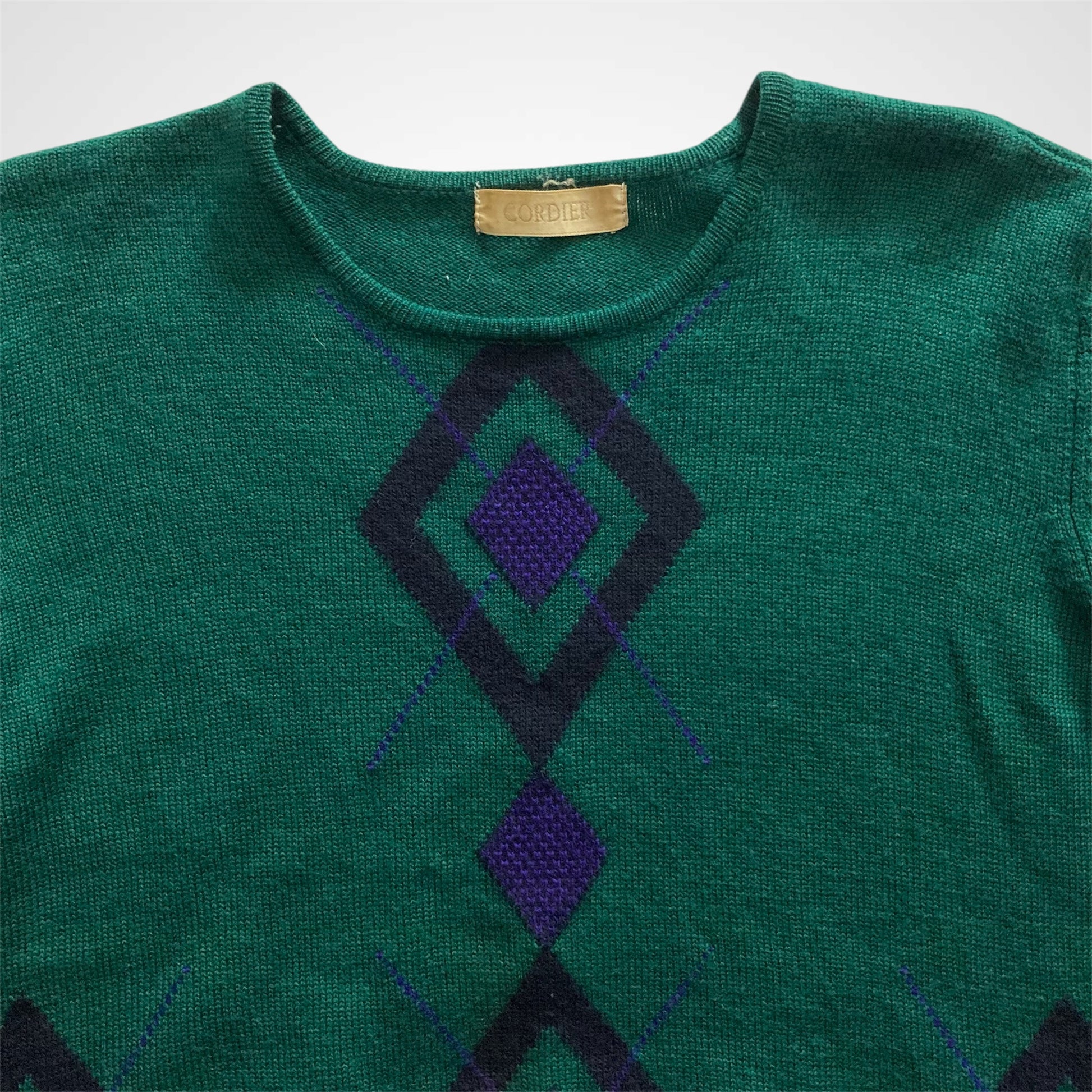 Capo vintage degli anni '90, in lana ultra fine, morbida e calda con dettaglio geometrico ricamato sul davanti e sul dietro.